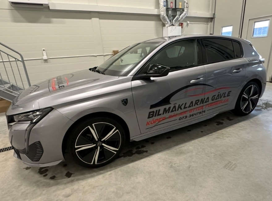 Vi hjälper ditt företag att synas! Den här bilen har fått en företagsdekor med logga och kontaktuppgifter – en snygg och proffsig fordonsdekor som stärker varumärket och gör reklam varje gång bilen rullar ut på vägen.